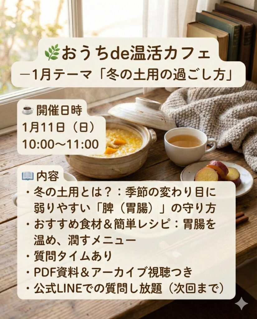 - 【楽しく学びたい方へ】温活カフェ お茶を飲みながら、同じ悩みを持つ仲間と楽しくセルフケアを学べるカジュアルな場です。